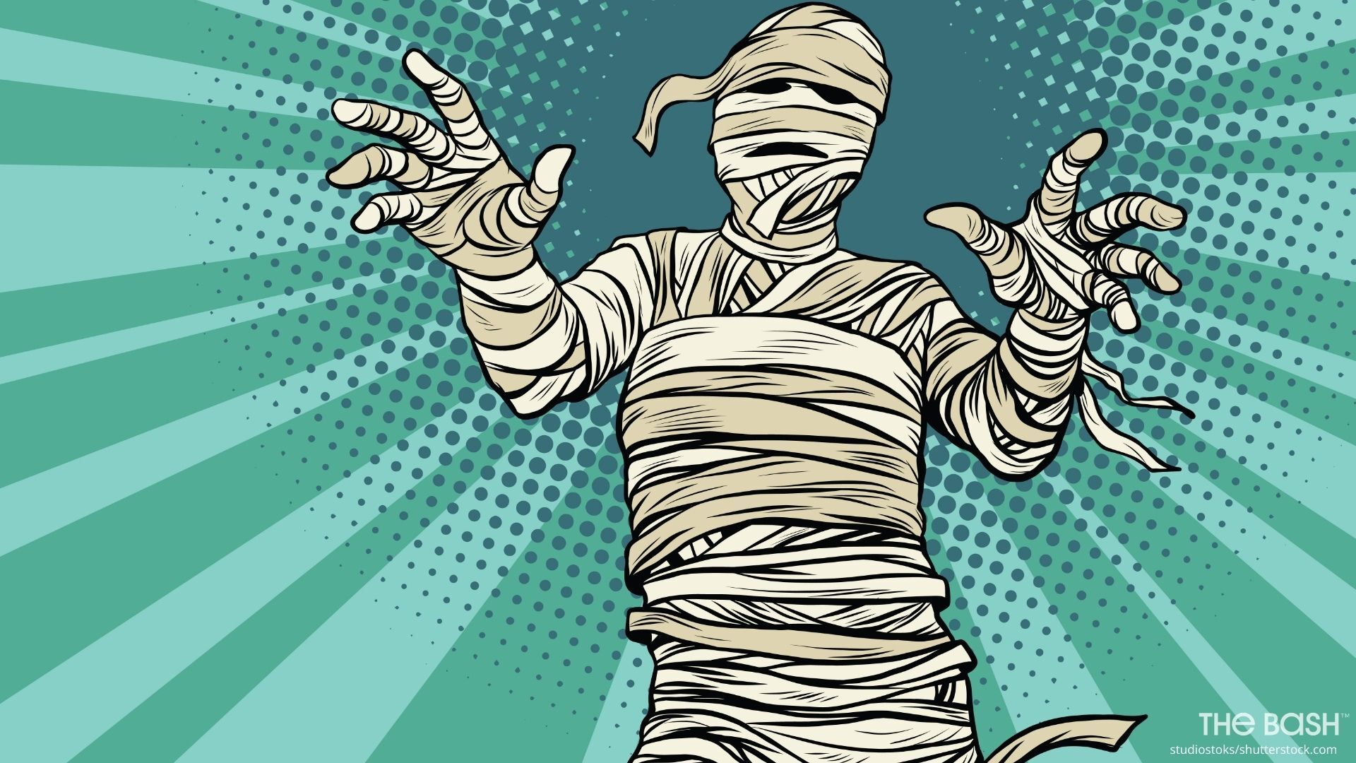 With bright colors and a vintage vibe, use this mummy Halloween background at your virtual Halloween party!
