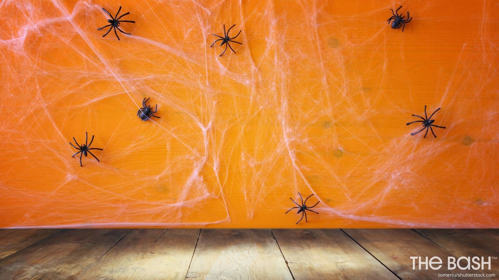Orange walls, spiders, and cobwebs? This festive Halloween wallpaper is everything you need for your virtual Halloween party.