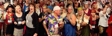 THIS IS NOT MURDER MYSTERY DINNER THEATER! We do PARTIES for groups of 35-70 people where ALL of the guests ALL play characters. It is the party for people who want "something different!" Very few people have ever been to an event where 50 or 60 people are all playing characters. HOW IT WORKS: First select a theme: pirate, roaring 20s, soap opera, rock and roll, sci-fi, or holiday party. (For the holiday party, we thought a murder theme might be inappropriate, so the players investigate who might have stolen Santa's magic dust that makes reindeer fly. ) Once the theme has been selected, players go to our website. They click on their event, which shows them a list of characters that are broken down into major, minor, and extra characters - just like a movie. So if they are a live wire, they can choose a big part, and if they are shy, they can take a small part. A week before the party, they will receive their character information. This reveals who their character is, what they know, who they know, and whether they are the killer. But then they have a week to think about it. This is when the magic starts, as the pre-party buzz is tremendous! They can't wait to go to the event and be their character! This is what happens at the event: All the parts are written so that the characters are going to a party. So if it is the Roaring 20s party, they are all attending a gathering planned to honor a crime boss. If it is the holiday party, it is the party Santa throws every year for his friends and staff. If it is a rock and roll party, it is a backstage party to kick off the world tour for a rock star. So guests are “in character” from the moment they walk into the party. We give them their nametag, and they immediately assume their identity. There is about half an hour of mixing/mingling/socializing as guests arrive – typically doors might open at 7:30 pm and the first clue being announced at 8:00. During this initial half hour, guests mix and mingle just like a regular event. However, everybody is “in character.” At 8:00, we gather everybody together and give them a few guidelines. This tells them the killer was selected at random - nobody, not even the point person from the group, knows who the killer is. So even the point person for the group gets to play along and might be the killer. We then do introductions of characters, which takes 15-20 minutes, depending upon the size of the group. If it is a very large group, we would only introduce major characters. After the introductions, we tell them there has been a murder, and the victim, of course, is someone that everybody knows. The murders have all happened “off-site.” For example, we might tell everybody the rock star was killed in her studio. So this means we don’t have to perform a skit and guests do not have to recite lines or “perform” in front of a large group. The party then transitions into a typical mingling event where guests share the last time they saw the deceased. Of course, the mother of the deceased must be consoled by guests – some guests are shocked, and yet others may have hated the victim, so they are glad he/she is dead. Every 10-15 minutes, we broadcast news bulletins with new clues. After all the clues have been announced, we ask for volunteers to guess who they think did it. These comments are always hilarious because by now people have come up with many bizarre, funny and ridiculous theories (especially if alcohol was provided at the event!) We then solve the mystery, guests vote on best actor and actress, and we hand out trophies (that look like Oscars) for best costume, best actor and best actress. That is the end of the event. Guests will realize that they have just played the game of make believe that we all played as children. Nobody told us what to say - we used our imaginations! And that's why our parties are true magic. Companies love our events because nobody talks shop since everybody is in character. The CEO is now on the same level as the employees, and the new hires are not at a disadvantage. About a third of our parties are private events in private homes. A third of our parties are corporate events, and a third are public events where people sign up for parts on our website. We believe our events would be perfect for rehearsal dinners (though we admit we have not done one yet.) How that would work is people would show up in character, we would do the event, and then we would go back to reality with the wedding bride and groom speeches coming after the mystery is done. Regarding price, our fee is based on $25 per person with a minimum of 35 guests. So the $875 is based on $25 per guest multiplied by 35 people, resulting in a total of $875. DOES YOUR CLIENT WANT "SOMETHING DIFFERENT? GIVE US A CALL!!!